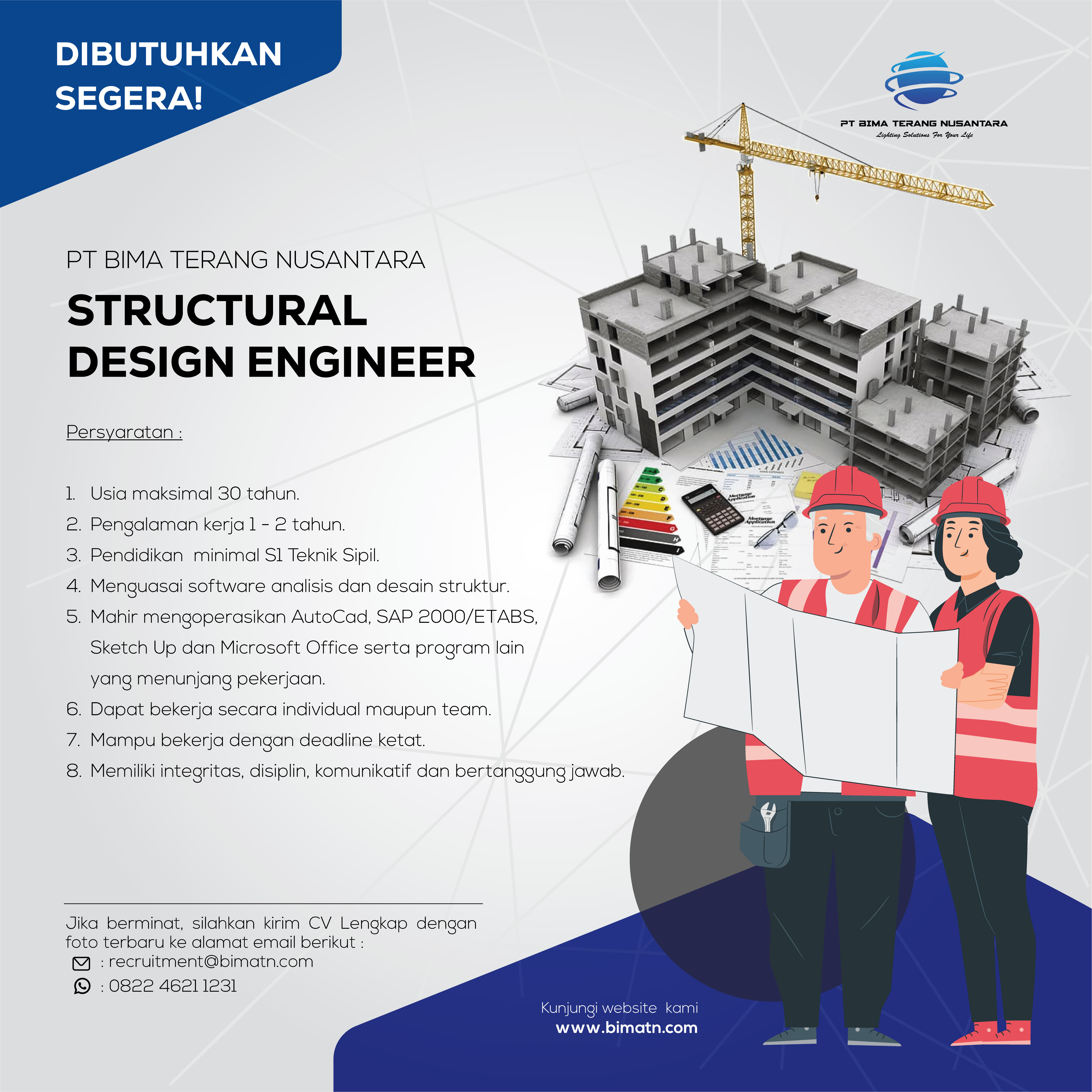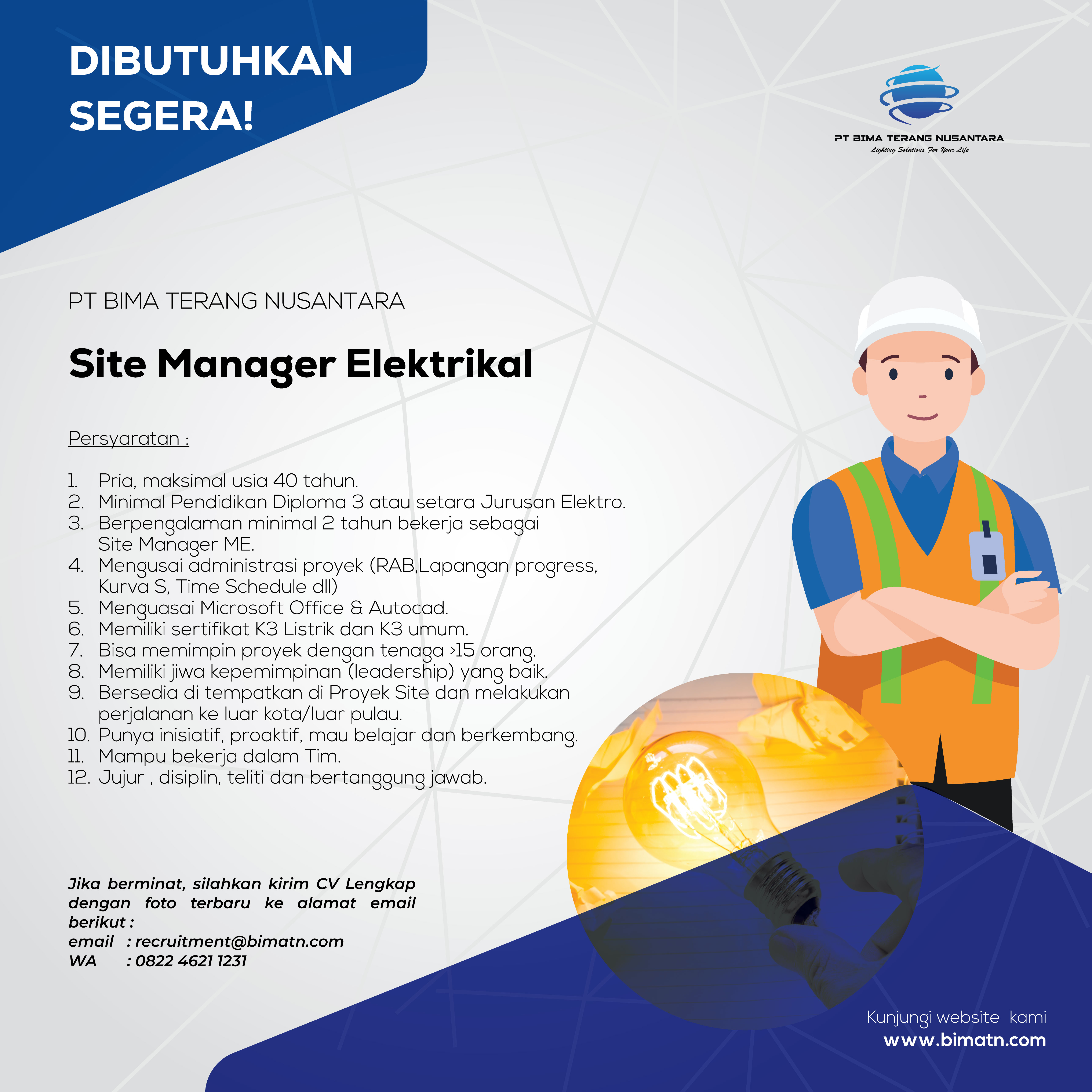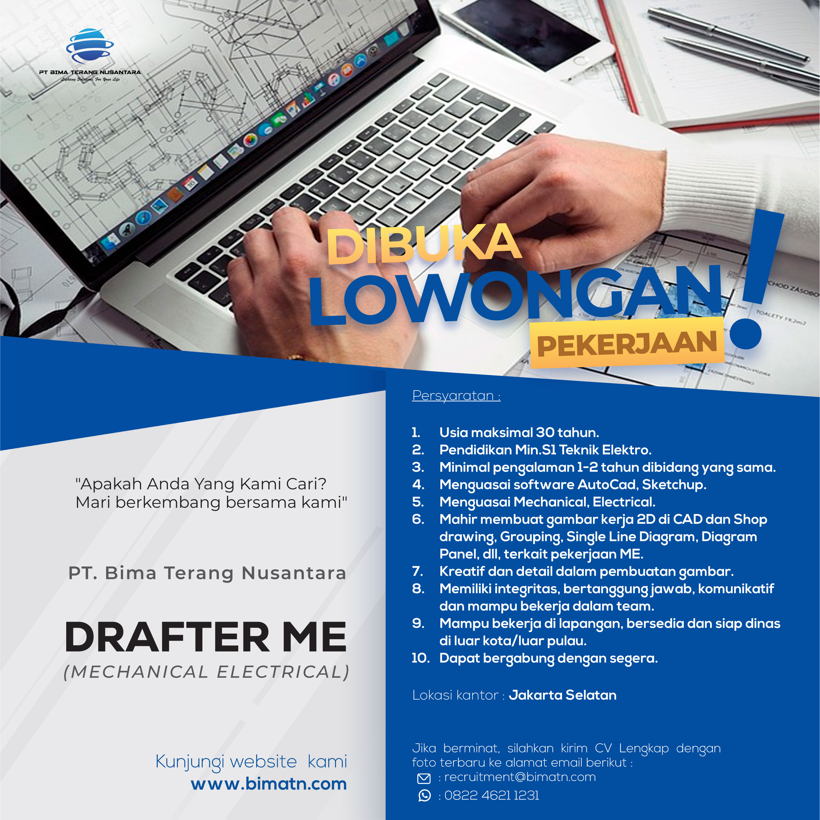 PT.Bima Terang Nusantara mencari tim untuk posisi sbb: